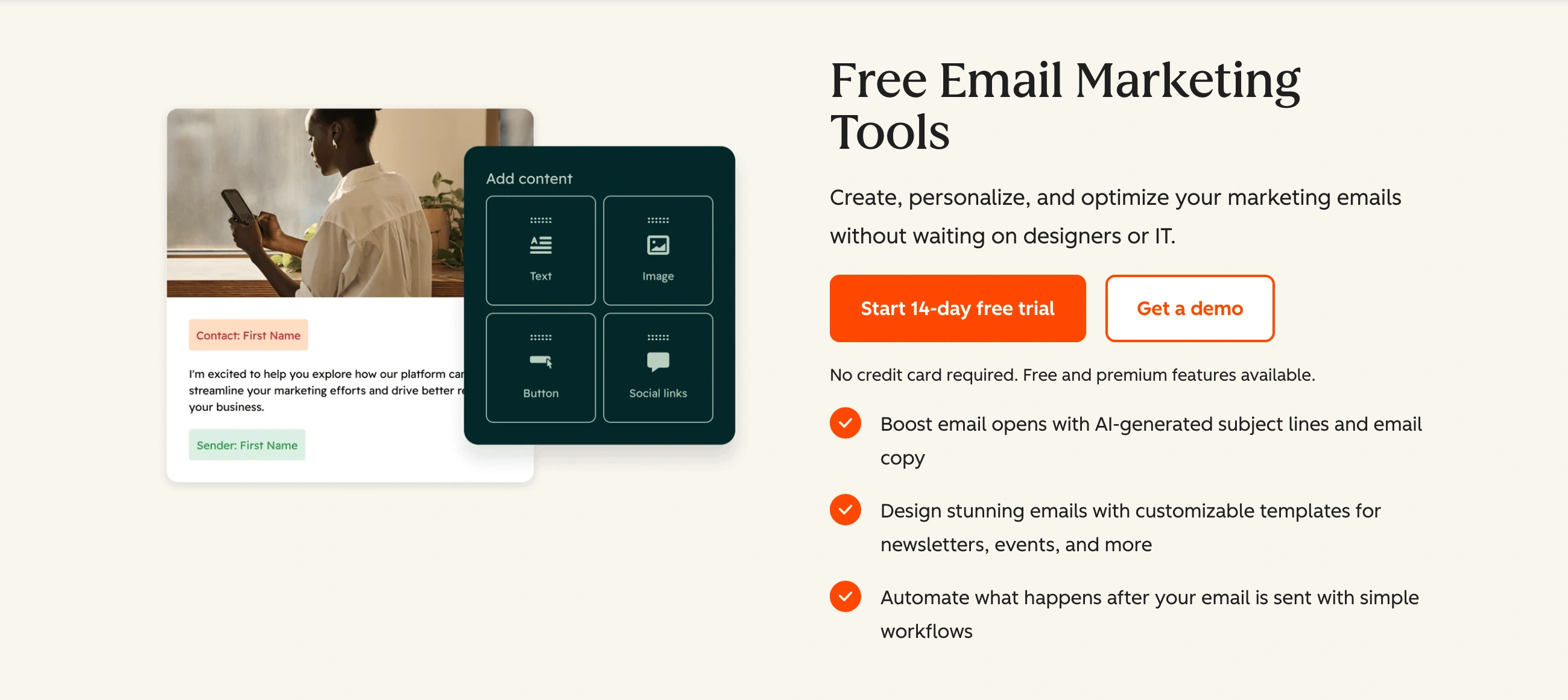 The catch: Only 2,000 emails per month, which is quite restrictive. Automation isn't included in the free plan. And you'll have HubSpot branding on all your emails.